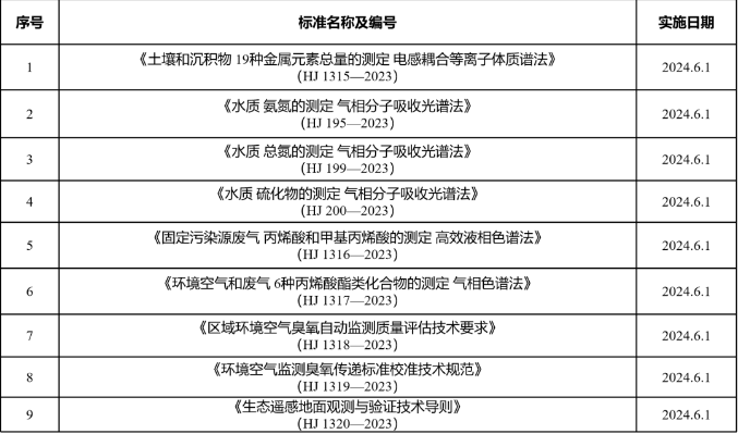 2024年6月1日起實(shí)施! 這9項生態(tài)環(huán)境監測新標準